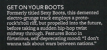 Note: (not sure if the fact that Q alternately calls the song Get On your Boots and Get Your Boots On says more about Q’s editing ability or U2′s song-naming ability)